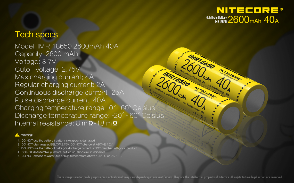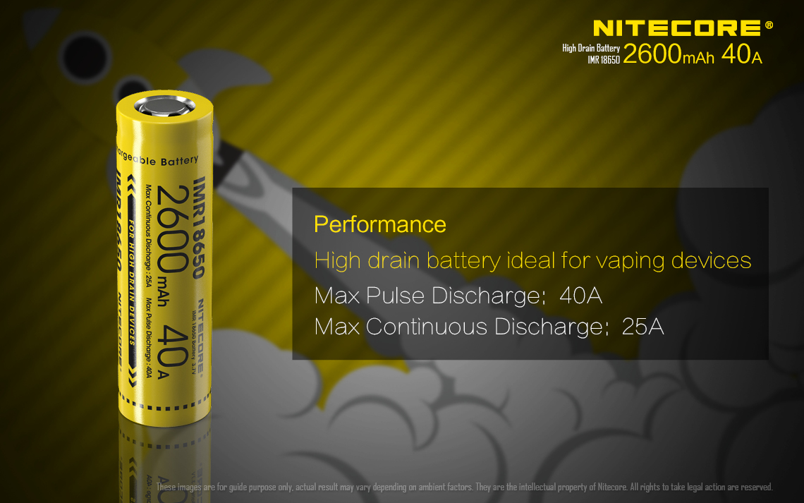 ΜΠΑΤΑΡΙΑ NITECORE IMR18650 2600mah 40A FlatTop